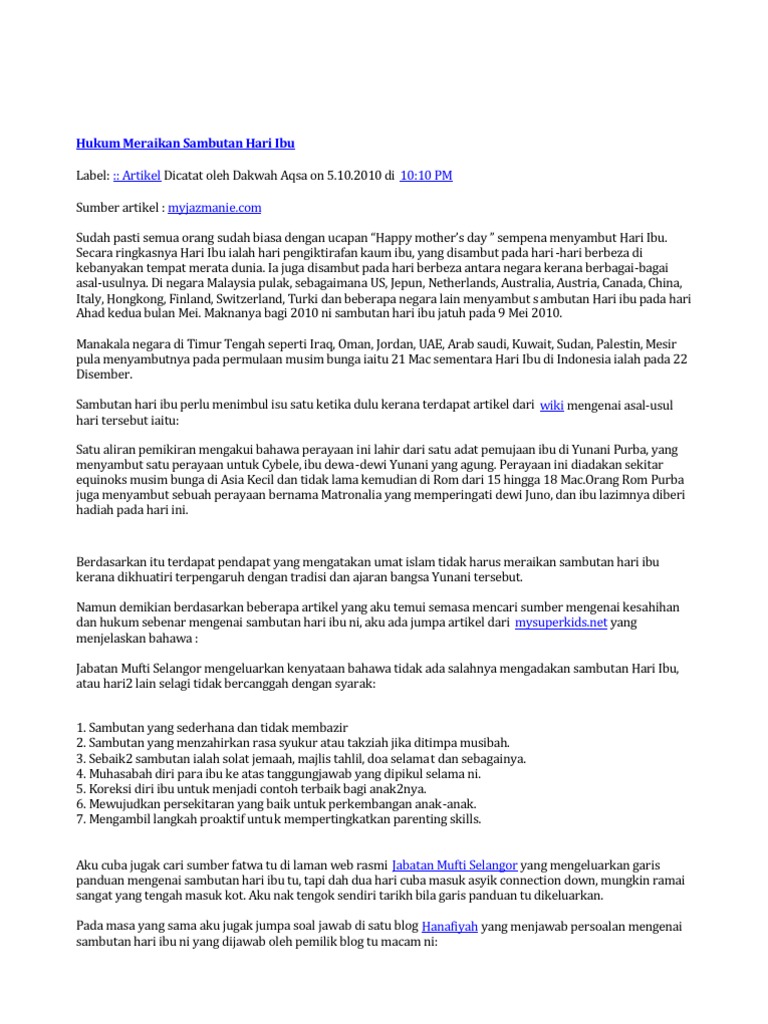Hukum Menyambut Hari Ibu - Para ulama berselisih pandangan mengenai persoalan hukum meraikan 'hari ibu' ini.. Hukum sambut hari ibu menjawab kemusykilan agama facebook. Hurm nextime pemikiran tu kena bijak ya. Ceramah ust mutadhok di masjid jamek tasek gelugur p pinang 10.5.2014. Di momen spesial ini tidak ada salahnya kamu sebagai anak memberikan hadiah spesial untuknya. Kenalkan namaku andi, usia 25 tahun.